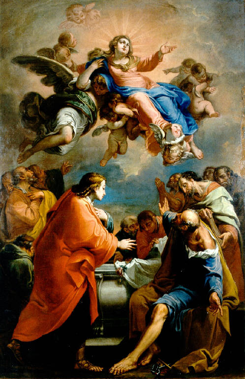 - NOTIZIE STORICO CRITICHE Il dipinto è copia dell'Assunzione della Madonna del bolognese Gaetano Gandolfi pr la chiesa della Madonna di Campagna a Ponte in Valtellina. E' una copia diligente, ma rispetto alla luccicante sensualità dell'originale, questa versione appare magra e quasi cretosa.