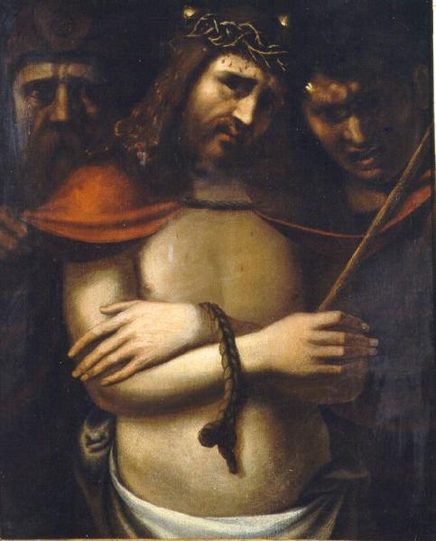 - NOTIZIE STORICO CRITICHE Il dipinto è opera di un artista locale che riprende modelli artistici lombardi e in particolare i risultati raggiunti da Andrea Solario nelle numerose versioni del Cristo portacroce o dell'Ecce Homo. Interessante il confronto con il Cristo portacroce della Galleria Borghese di Roma, opera di Solario.