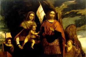 Lunetta di ponte. MADONNA CON GESU' BAMBINO, SAN MAURIZIO, SAN GIOVANNINO E UN ANGELO