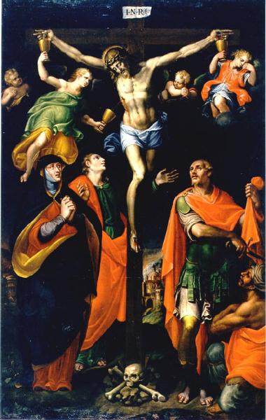 Cristo crocifisso con la Madonna, san Giovanni evangelista, san Martino e il povero