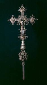 - NOTIZIE STORICO CRITICHE Questa croce processionale presenta un carattere fondamentale dell'arte lombarda dalla fine del Quattrocento all'inizio del Cinquecento: la cura minuziosa dell'ornamentazione spinta ad un grado che tocca quasi l'eccessivo. La croce poggia sopra un'edicoletta con figure a tutto tondo dei dodici apostoli.