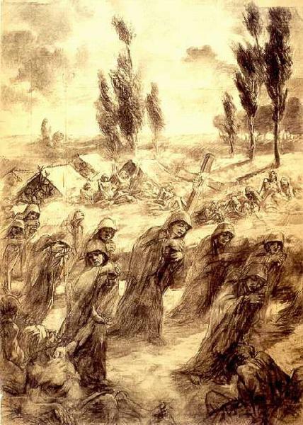 - NOTIZIE STORICO CRITICHE Il cartone è preparatorio per un affresco nella cappella di S. Carlo Borromeo nella chiesa di S. Eusebio in Como. Per questa cappella Eliseo Fumagalli dipinse un cilco di affreschi con le storie della vita di S. Carlo Borromeo. Anche in quest'opera si sente forte l'ispirazione religiosa dell'artista che \nPer questa stessa chiesa Fumagalli realizzò anche una delle sue opere più intense: il trittico del Cristo Re.