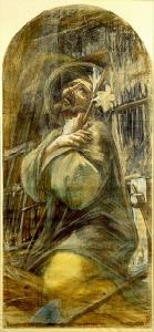 - NOTIZIE STORICO CRITICHE Il cartone è preparatorio per la parte destra del trittico del Cristo re nella chiesa di S. Eusebio in Como. S. Giuseppe è rappresentato inginocchiato con lo sguardo rivolto verso l'alto. Il trittico ora smontato è stato trasferito nella Casa del Cardinal Ferrari a Como.