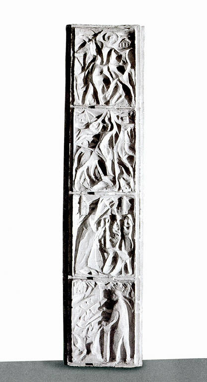 - NOTIZIE STORICO CRITICHE L'altorilievo è composto di quattro formelle rappresentanti: San Martino, Bona Lombarda, Feliciano Ninguarda ed Ezio Vanoni. Il bozzetto fa parte di una serie di provini per opere di tipo monumentale o commemorativo commissionate all'artista sia da Enti pubblici che da privati, realizzati con tecniche diverse.