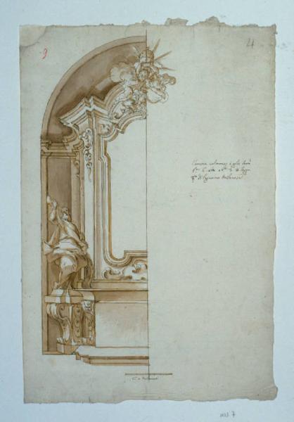 - NOTIZIE STORICO CRITICHE I simboli al sommo dell'ancona indicano che l'altare era dedicato a un Santo pontefice. Le scritte "brazza milanesi" e "legname milanese" autorizzano l'ipotesi che il progetto fosse destinato ad una chiesa di Milano. Non risultano però notizie a tal proposito. La complessità dell'invenzione suggerisce che il progetto dovesse essere eseguito da un pittore prospettico piuttosto che da un marmorista.