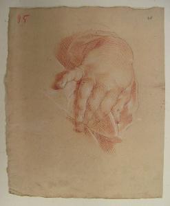 sanguigna, matita e lumeggiature a gessetto su carta beige