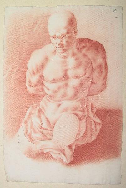 - NOTIZIE STORICO CRITICHE Il disegno è contenuto in una "cartella con 9 schiavi" (n. 107 dell'inventario della donazione al Comune). Gli altri sono quelli schedati N.I.L. 227, 228, 245, 247, 248, 249, 250 e 251: tutti a sanguigna su carta bianca, tutti attribuiti a Pietro ma non tutti dello stesso livello. Almeno alcuni dovrebbero corrispondere a "li 4 schiavi di Livorno (del monumento a Ferdinando I de Medici di Pietro Tacca) con 4 torsi de medemi", annoverati alla voce "studio di riglievi in gesso" nell' "'Inventario dè Fondi, livelli ecc." manoscritto da Pietro fra 1735 e 1737. (c. 54-55). I disegni dovrebbero però collocarsi negli anni dell'apprendistato romano, cioè agli inizi del secolo.