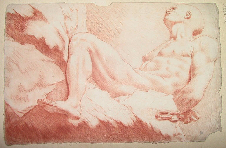 - NOTIZIE STORICO CRITICHE Il disegno è contenuto in una "cartella con 9 schiavi" (n. 107 dell'inventario della donazione al Comune). Gli altri sono quelli schedati N.I.L. 227, 228, 245, 246, 247, 248, 249 e 251: tutti a sanguigna su carta bianca, tutti attribuiti a Pietro ma non tutti dello stesso livello. Almeno alcuni dovrebbero corrispondere a "li 4 schiavi di Livorno (del monumento a Ferdinando I de Medici di Pietro Tacca) con 4 torsi de medemi", annoverati alla voce "studio di riglievi in gesso" nell' "'Inventario dè Fondi, livelli ecc." manoscritto da Pietro fra 1735 e 1737. (c. 54-55). I disegni dovrebbero però collocarsi negli anni dell'apprendistato romano, cioè agli inizi del secolo. Questo è della serie quallo trattato più compiutamente.