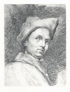 - NOTIZIE STORICO CRITICHE Data la puntuale corrispondenza con l'autoritratto di Pietro Ligari del 1715, appartenente alla collezione Boschi di Roma, il foglio fu creduto autografo di Pietro, fino a che il restauro del 1982, appurò che la carta è di tipo industriale. Si arguisce quindi che il disegno è una copia ottocentesca di mano di Angelo, suo pronipote, che si esercitò altre volte in questi disegni "d'après"