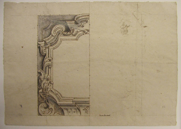 - NOTIZIE STORICO CRITICHE Il disegno raffigura una delle cornici che inquadrano i grandi medaglioni sulle pareti del presbiterio della chiesa parrocchiale di Lanzada, la cui decorazione venne eseguita dal Ligari nel 1720. Si veda anche N.I.L. 413.
