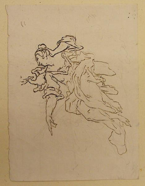 - NOTIZIE STORICO CRITICHE Il soggetto è di difficile interpretazione: se l'uccello è un pavone, la donna potrebbe essere Giunone, mentre la tromba appena accennata farebbe pensare alla Fama. Si tratta comunque di un soggetto profano, forse in relazione con quelli mitologici dipinti per il marchese Lucini di Milano anteriormente al 1720. Ma il disegno potrebbe anche riferirsi alla seconda delle "due portiere, l'una rapimento di Proserpina, Giunone l'altra, £. 12" elencate al n. 54 dell'Inventario ligariano del 1770.