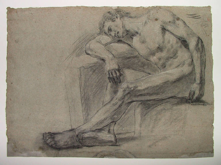 carboncino, sfumino, tocchi di gessetto su carta bigia