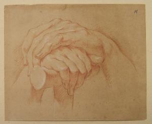 sanguigna con tocchi a gessetto su carta bigia