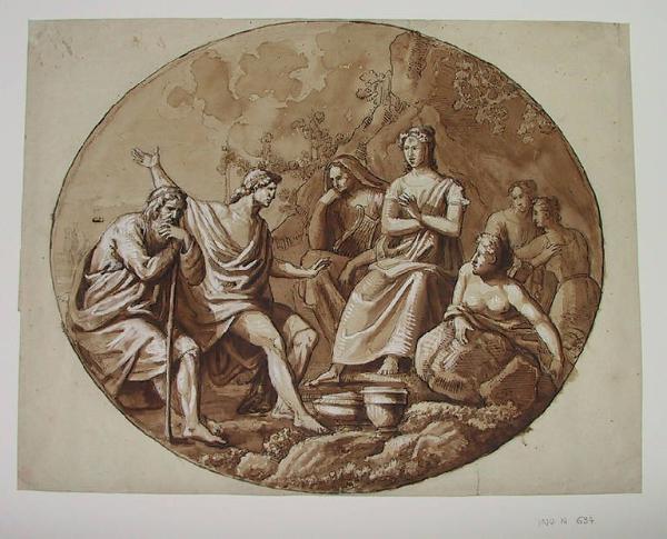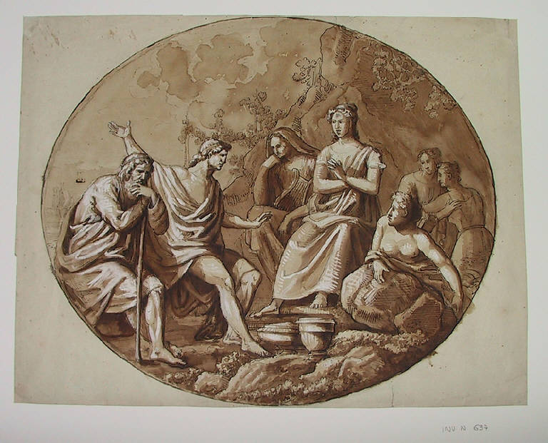 - NOTIZIE STORICO CRITICHE La scena, rappresentata con il gusto neoclassico dei "tableaux vivants", si identifica sicuramente con l'episodio omerico (Odissea, IV), come si deduce dalla scritta autografa sul disegno N.I.L 657, di cui questo può essere considerata versione definitiva.