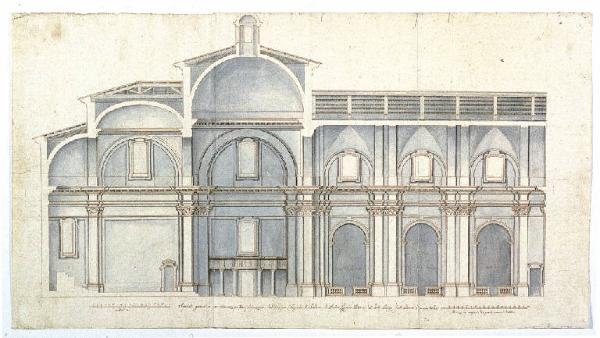 Sezione longitudinale della della collegiata di Sondrio. Sezione della chiesa dei Santi Gervasio e Protasio a Sondrio