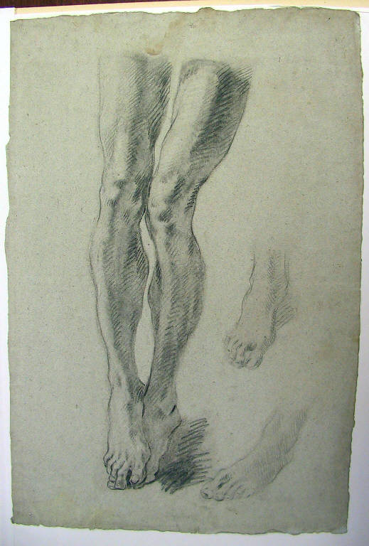 matita e carboncino con lumeggiatura a gessetto su carta cenerina