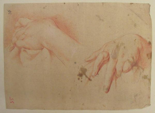 - NOTIZIE STORICO CRITICHE Il modello delle due mani è lo stesso schedato al N.I.L. 81, ripreso da diversi punti di vista. La mano di sinistra è replicata nei disegni schedati al N.I.L. 93 e 95.