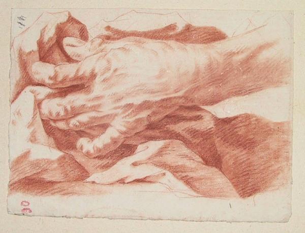 - NOTIZIE STORICO CRITICHE Probabilmente a questo disegno, come a quelli schedati al N.I.L. 190 e 191, si riferisce l'annotazione di Pietro nell'Inventario dè Fondi, Livelli, ecc., alla voce "Studio di riglieui di Gesso" (pag. 54-55): "da Michel'Angelo ( ) mano del Mosè". La data ante quam è quella del documento, ma il disegno dovrebbe risalire al tempo dell'apprendistato romano , cioè ai primi anni del secolo. Le ombreggfiature condotte in qualche punto con tratti a zigzag ottenuti senza staccare la matita dal foglio differiscono da quelle a linee parallele che si rilevano di solito nelle sanguigne di Pietro; ne deriva un chiaroscuro più marcato e drammatico, che si nota anche nello "Schiavo" schedato al N.I.L. 250, il quale dovrebbe essere coevo al presente disegno ed è menzionato da Pietro nello stesso luogo dell'Inventario.