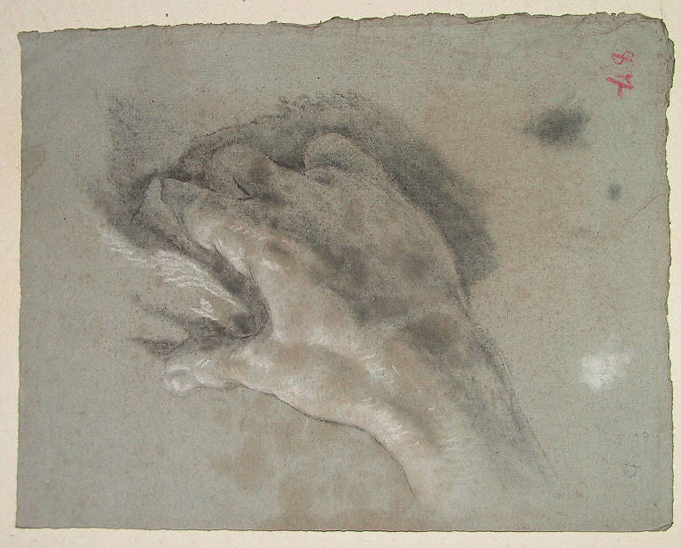 carboncino sfumato e gessetto su carta cenerognola
