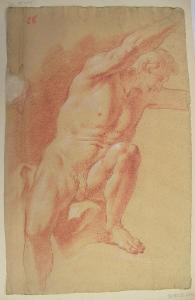 sanguigna, gessetto e sfumino su carta preparata ocra-rosata
