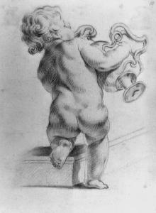 - NOTIZIE STORICO CRITICHE Il disegno, di cui esistono alcune repliche in collezioni private, è un esempio di disegno decorativo profano fine a sè stesso. Come altri puttini simili, richiama da vicino gli esemplari plastici o scultorei dell'epoca.