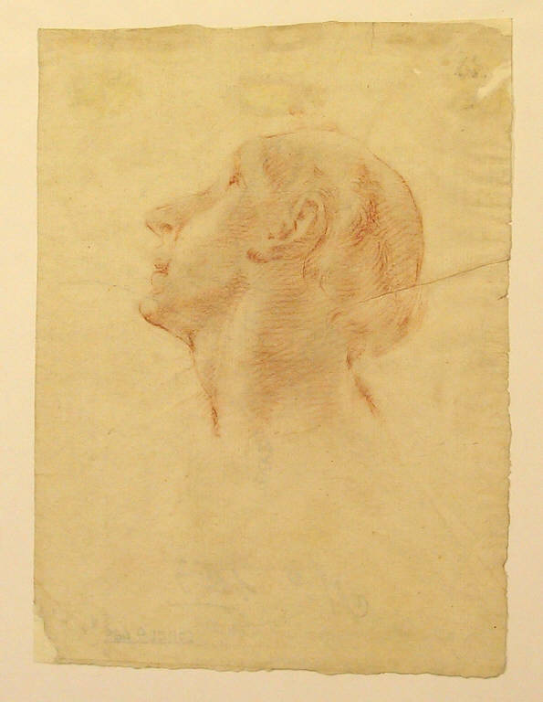 - NOTIZIE STORICO CRITICHE Il disegno richiama alcune teste delle due pale della Madonna del Rosario nelle collegiate di Sondrio e di Chiavenna (1738), o della pala Migazzi di Ardenno (1747). Nella collezione del Museo valtellinese esiste un'altra testa quasi identica (Disegno schedato al N.I.L. 217). Nel verso è abbozzato a lapis un puttino che sembra seduto su un timpano.
