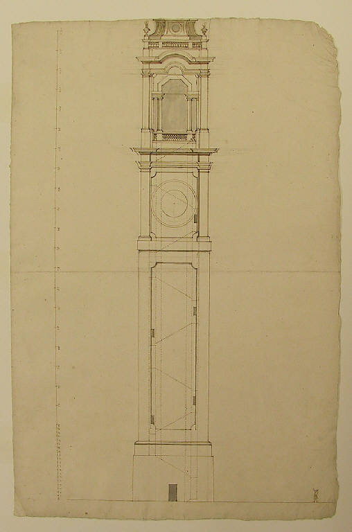 - NOTIZIE STORICO CRITICHE Il foglio si avvicina, anche per le misure, a quello schedato al N.I.L. 34 e, al pari di quello, potrebbe essere uno dei "4 dissegni de c ampanili fatti in piccolo, L. 60" elencati da Pietro nell'Inventario del 1735-37. La datazione 1733-35 dell'Inventario di Pietro si assume come termine cronologico ante quam.