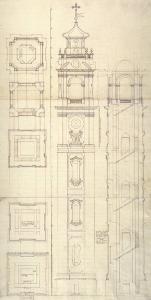 - NOTIZIE STORICO CRITICHE Alcuni elementi di questo disegno compaiono nel primo progetto del 1733, schedato al N.I.L. 708. Il disegno si distingue per la ricca ornamentazione, che si impreziosisce via via dal basso verso l'alto.