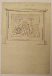 - NOTIZIE STORICO CRITICHE Non risultano notizie dai documenti ligariani su questo disegno, che forse si riferisce all'attività anteriore al 1720, ossia all'inizio del Mastro N: probabilmente si tratta di soggetto da dipingere su un elemento architettonico. Colpisce tuttavia la sobrietà di quest'ultimo, affatto dissimile dallo stile ligariano.
