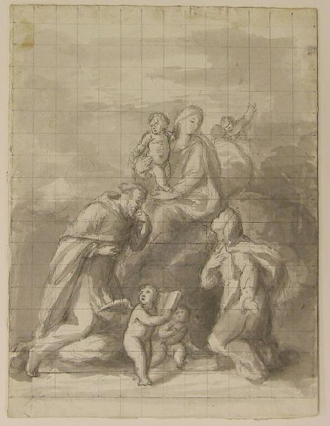 - NOTIZIE STORICO CRITICHE Si tratta certamente del primo "pensiero" per la pala della Madonna del Rosario e Santi, dipinta da Angelo Ligari per la parrocchiale di Piateda nel 1859. La scena è rappresentata in tono quasi settecentesco, la composizione è vivace, mossa, gli atteggiamenti quasi enfatici. Le figure ripetono palesemente i modelli di Pietro Ligari nelle due pale della Madonna del Rosario di Chiavenna e di Sondrio (1738). Il "pensiero" fu poi modificato con stile più composto e statico, come dimostrano il progetto definitivo edil bozzetto (N.I.L. 621 e 733), nonchè la pala stessa.