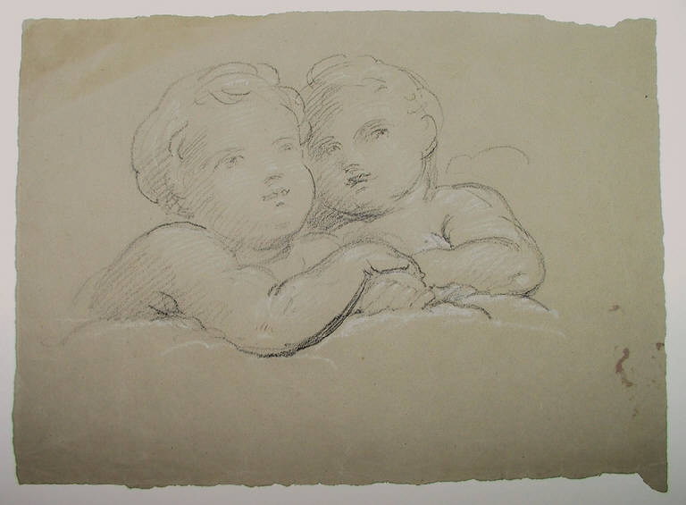 - NOTIZIE STORICO CRITICHE Il gruppo dei due fanciulli, di reminescenza raffaellesca, si riconosce in quello alla destra del Cristo giudice nel disegno schedato al N.I.L. 599. E' particolarmente curato il rilievo, trattato a fitte linee parallele.