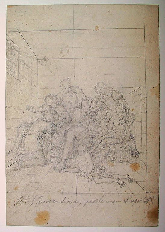 - NOTIZIE STORICO CRITICHE In questo disegno l'autore associa la tecnica della prospettiva all'illustrazione melodrammatica, sottolineata dal gesto del protagonista e dalla citazione dantesca.