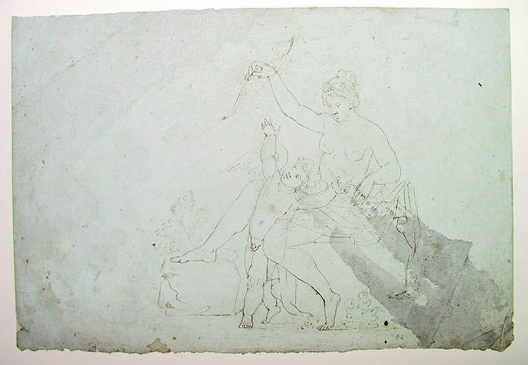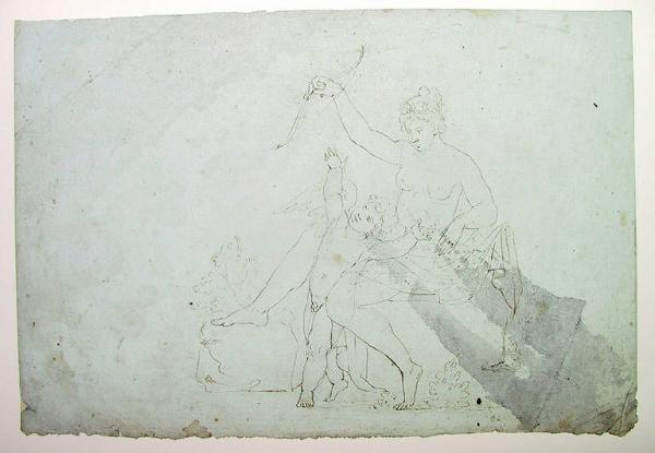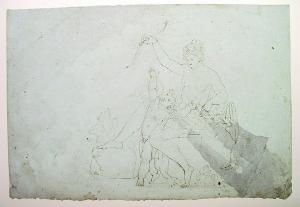 - NOTIZIE STORICO CRITICHE Il graziosissimo disegno è tracciato a semplice contorno, ma con tale espressività lineare da non richiedere ombreggiatura. Il tratto è continuo, senza pentimenti, condotto con straordinaria maestria. Le fisionomie sono diverse da quelle che si notano nei disegni di Angelo. Perciò l'attribuzione non è sicura, e il dubbio è giustificato anche dalla filigrana insolita.