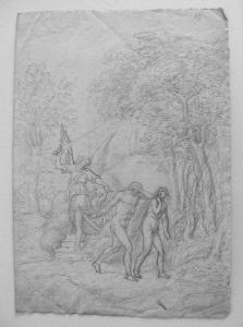 - NOTIZIE STORICO CRITICHE La scena si ritrova quasi uguale nel disegno schedato al N.I.L. 625, ma nel presente foglio il rilievo è meno marcato.