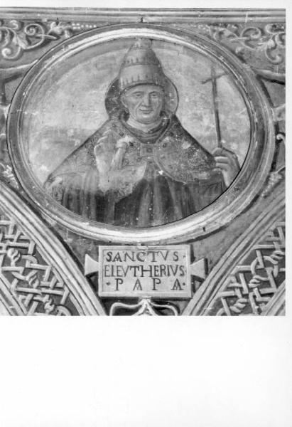 - NOTIZIE STORICO CRITICHE La Fanciulli Pezzini ravvisava affinità tipologiche, nella fisionomia dei volti larghi e squadrati, con gli affreschi del tiburio e dell'abside che richiamano a suo avviso lo stile butinonesco. Il disegno è cinquecentesco ma l' immagine risulta largamente ridipinta per cui è problematica la datazione.La cornice lignea è probabilmente un'aggiunta settecentesca.