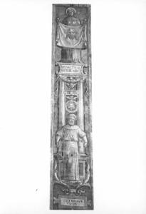 In alto è raffigurata la Veronica, più sotto, davanti ad un'edicola architravata, una figura maschile, forse un profeta, quindi due angeli accanto ad un vaso e due figure genuflesse. Monocromo su toni di grigio.