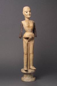 La " statua marionetta " è montata sulla base, è interamente in legno con le braccia vuote di tela stampata dalle quali mancano le mani. Le braccia sono inchiodate alle spalle. La struttura è quella di una piccola marionetta le cui articolazioni sono state fissate ad un asse longitudinale che fa da sostegno infilandosi in un apposito foro nella base. L'anatomia è quella di un personaggio femminile. La testa è articolata al busto con una cerniera fissata posterirmente al collo e alle spalle; essa consente alla testa di rovesciarsi all'indietro senza tuttavia staccarsi completamente, dando così l'illusione della decapitazione. La statua è interamente dipinta di giallo chiaro (olio molto magro o tempera). Gli occhi sono di ricavati da spilloni. Visibili buchi di tarlo.