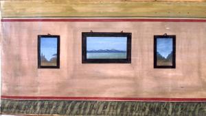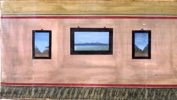 Il fondale è inchiodato ad un bastone di sezione circolare o quadrangolare mediante chiodi e pezzetti di cuoio salvatela. Sul retro è dipinta la veduta di un cimitero.