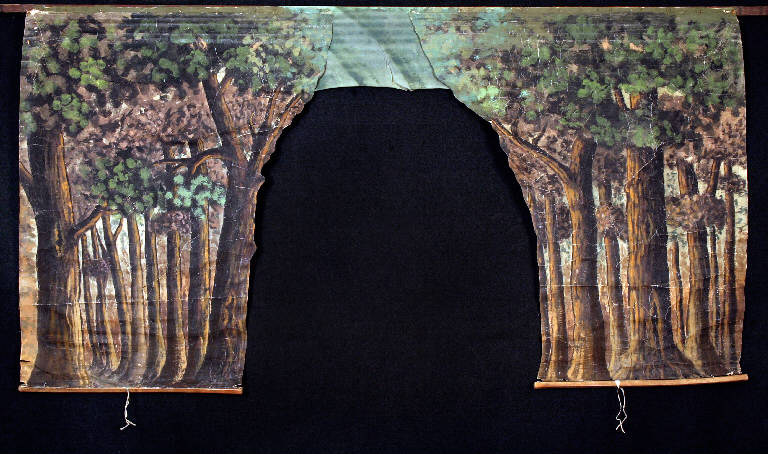 E' inchiodato ad un bastone di sezione circolare o quadrangolare mediante chiodi e pezzetti di cuoio salvacarta. Alle estremità inferiori sono inchiodate delle asticelle di legno alle quali è fissato un nastrino con duplice funzione, quella di tendere la carta (legandole a qualche supporto della baracca) e quella di tenere il principale arrotolato al momento di riporlo. In alto la mantovana di tela dipinta di verde chiaro. I due laterali sono in carta sagomata.