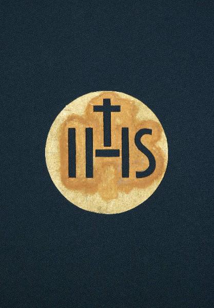 I cartoni per trasposizione, realizzati in cartoncino disegnato e ritagliato secondo un motivo decorativo, venivano utilizzati per creare decorazioni all'interno delle scenografie, consentendo di riprodurre in serie il motivo ornamentale. La mascherina presenta il monogramma cristiano I H S sormontato da una piccola croce.