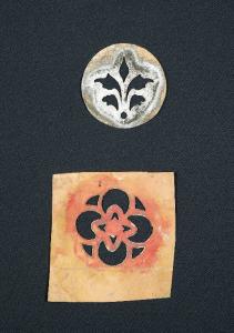 I cartoni per trasposizione, realizzati in cartoncino disegnato e ritagliato secondo un motivo decorativo, venivano utilizzati per creare decorazioni all'interno delle scenografie, consentendo di riprodurre in serie il motivo ornamentale. La prima mascherina è circolare con cinque foglie stilizzate poste sopra ad un piccolo cerchio che fa da centro; la seconda è un fiore simmetrico stilizzato con un centro a quattro punte arrotondate e quattro petali intorno.