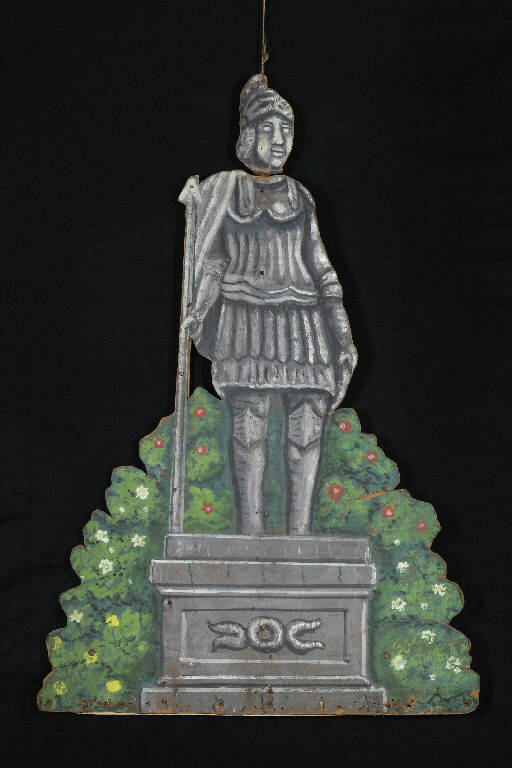 Lo spezzato veniva posto all'interno della baracca come completamento della scena. E' realizzato con cartone dipinto a tempera e sagomato. Sul retro è presente un'armatura in legno. Vi è rappresentata la statua del dio Marte la cui testa, tramite una cerniera di metallo applicata posteriormente, poteva piegarsi all'indietro a rappresentare la decapitazione della stessa, con una siepe con piccoli fiori bianchi, rossi e gialli.