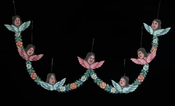 Lo spezzato veniva posto all'interno della baracca come completamento della scena. Si tratta di una ghirlanda composta da sei segmenti di cartone dipinto a tempera e sagomato, agganciati insieme da filo di ferro. Sull'unione di ogni segmento con successivo è posta la sagoma di un volto di cherubino con ali, dipinte di verde e bianco e in rosa e bianco alternate. I fiori sono rossi e bianchi. Ad ogni testa di cherubino è incollato un cordoncino per permettere di appendere la ghirlanda.