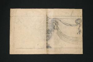 Nel disegno preparatorio, realizzato a matita, è rappresentato un vaso con nastro e una ghirlanda di fiori. Il disegno del vaso, più definito ed accurato nella parte destra del cartoncino, è solo abbozzato nella parte sinistra.
