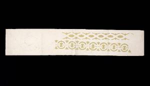 Il disegno preparatorio, su carta, presenta su entrambi i lati motivi decorativi ornamentali a tempera marrone chiaro. Probabilmente si tratta di una prova prima di utilizzare questa decorazione nella realizzazione di scenografie.