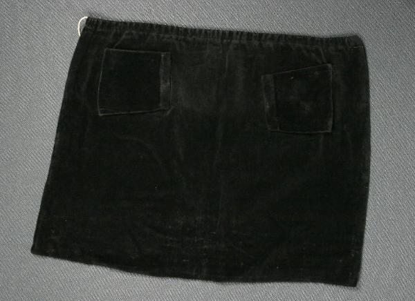 Soprabito di velluto nero con fodera verde; nell'orlo superiore è infilato un cordoncino per fissarlo al collo del burattino. Le maniche hanno fodera grigia.