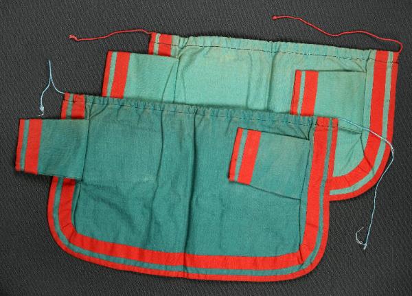 Le giacche sono di cotone verde, una più chiara, con fodera grigia; nell'orlo superiore è infilato un cordoncino che permette il fissaggio al collo del burattino mentre ai polsi e lungo il bordo è cucito del traversino rosso. Una striscia dello stesso traversino è cucita più internamente sulla giacca e sulle maniche come decorazione.