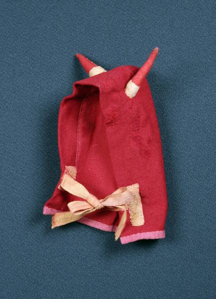 Il cappuccio è di panno di lana rossa con fodera di cotone rosso; all'interno, sul lato sinistro, è cucito del traversino rosso e dall'altro sul lato destro, all'esterno, per legare il cappuccio alla gola. Sulla sommità sono cucite due corna di materiale rigido rivestito di stoffa rossa. Il bordo inferiore è chiuso con traversino rosso.