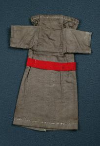 La veste è realizzata in cotone marrone con fodera verde e con una cintura di lana rossa applicata in vita. Anteriormente sono cucite le maniche dello stesso tessuto. Nel bordo superiore è inserito un cordoncino per il fissaggio al collo del burattino.