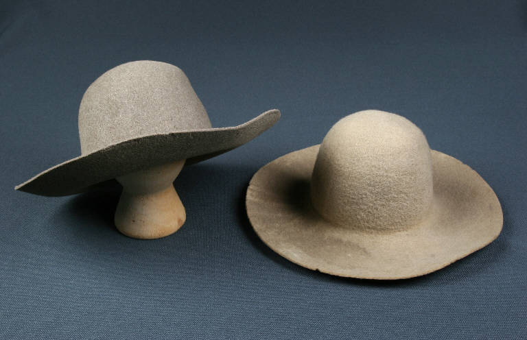I cappelli sono di feltro beige a tesa larga.